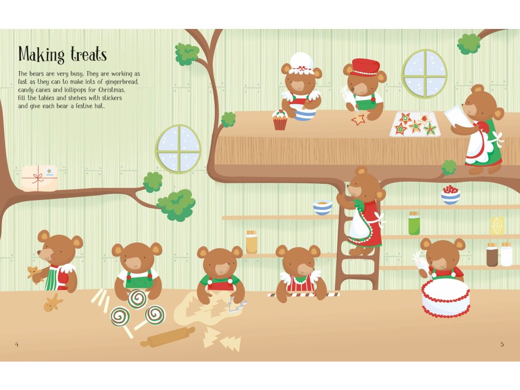 Join busy bears baking Christmas treats, enjoy a penguin party, help little mice build big snowmen, make and wrap presents with Santa's elves and add stickers to an advent calendar in the exciting countdown to Christmas.