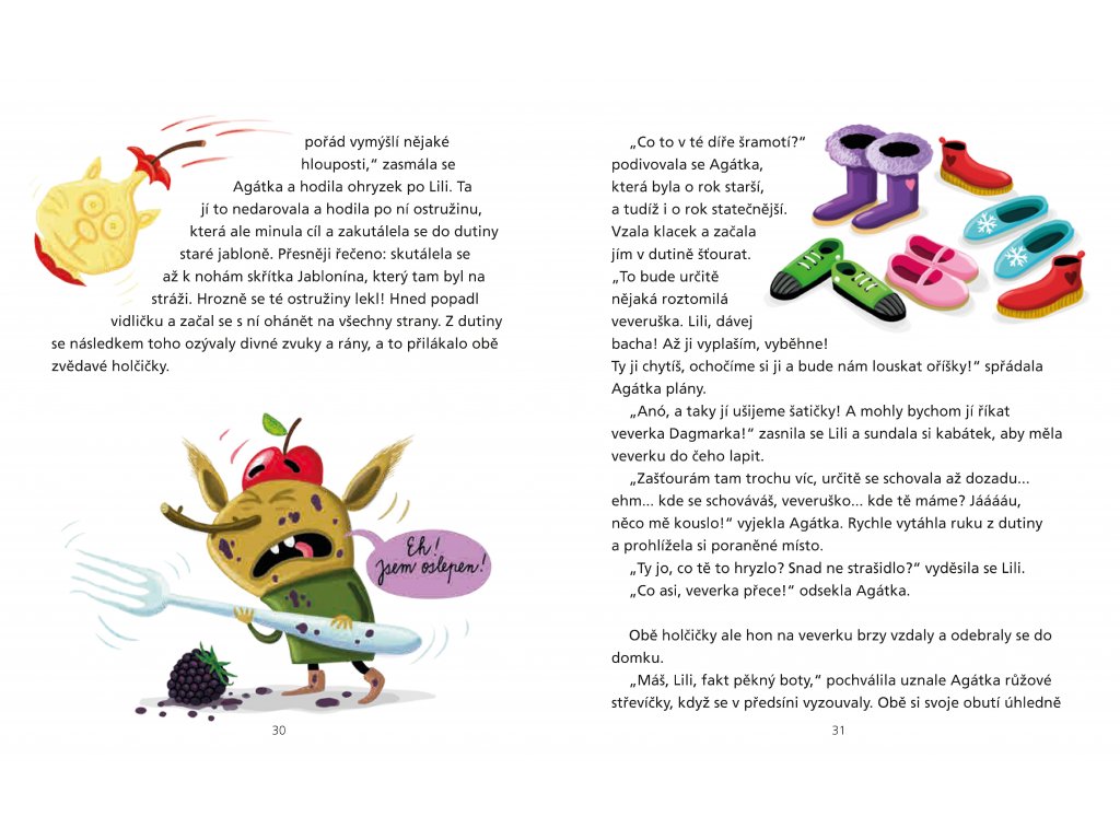 Trochu napínavý, trochu dojemný a opravdu hodně veselý - takový je příběh dvou jabloňových skřítků, jedné holčičky a její ztracené botičky. Skřítci Listěnka a Jablonín očekávají každým dnem narození miminka, ale kam ho uloží? Nemají postýlku! Uf, Jablonín po několika karambolech konečně sežene trpasličímu nemluvněti jednu opravdu nádhernou a pohodlnou. Jenže nedaleko od nich teď holčička Lili marně hledá svůj nejoblíbenější růžový střevíček...