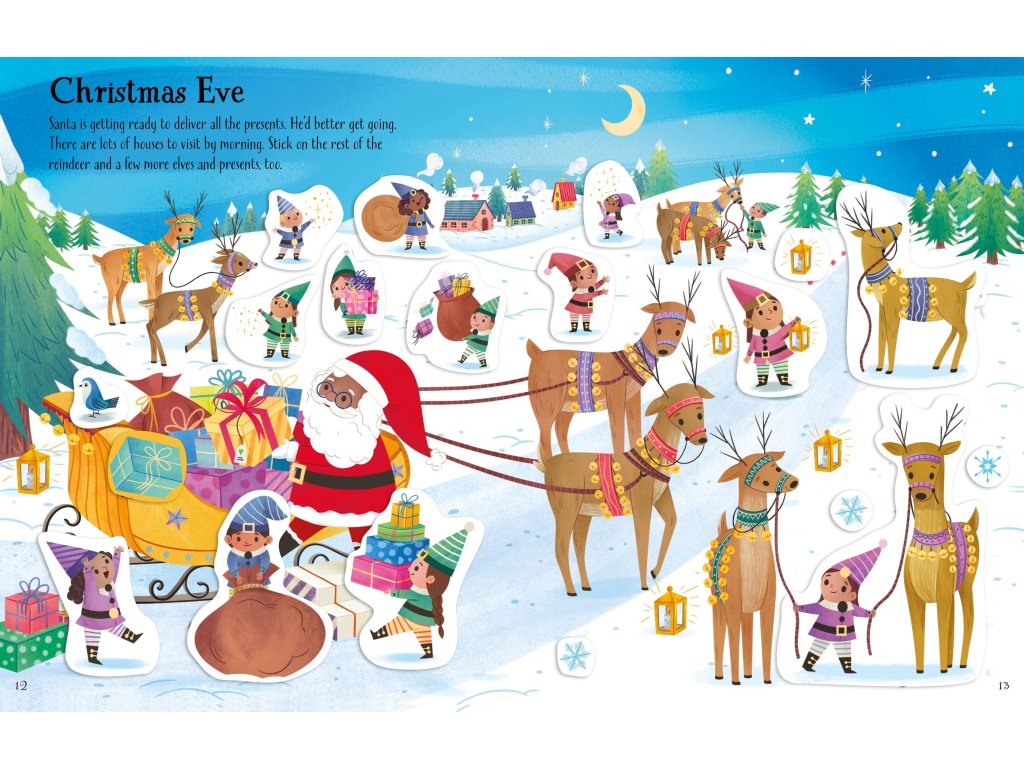 From a snowy Christmas market to Santa’s gleaming sleigh, sprinkle magic over the festive scenes as you add the sparkly stickers. Help Squirrel, Bear, Penguin and friends decorate the scenes with over 200 reusable stickers of adorable animals, Christmas presents and decorations, and a fold-out back cover to store stickers when not in use.