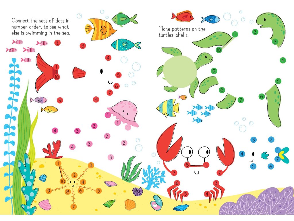 Help young children develop their observation and pen control skills with this colourful activity book. Each double-page has a different theme, including farm animals, sea creatures, woodland animals and pets. The durable, wipe-clean pages mean the book can be enjoyed again and again.
