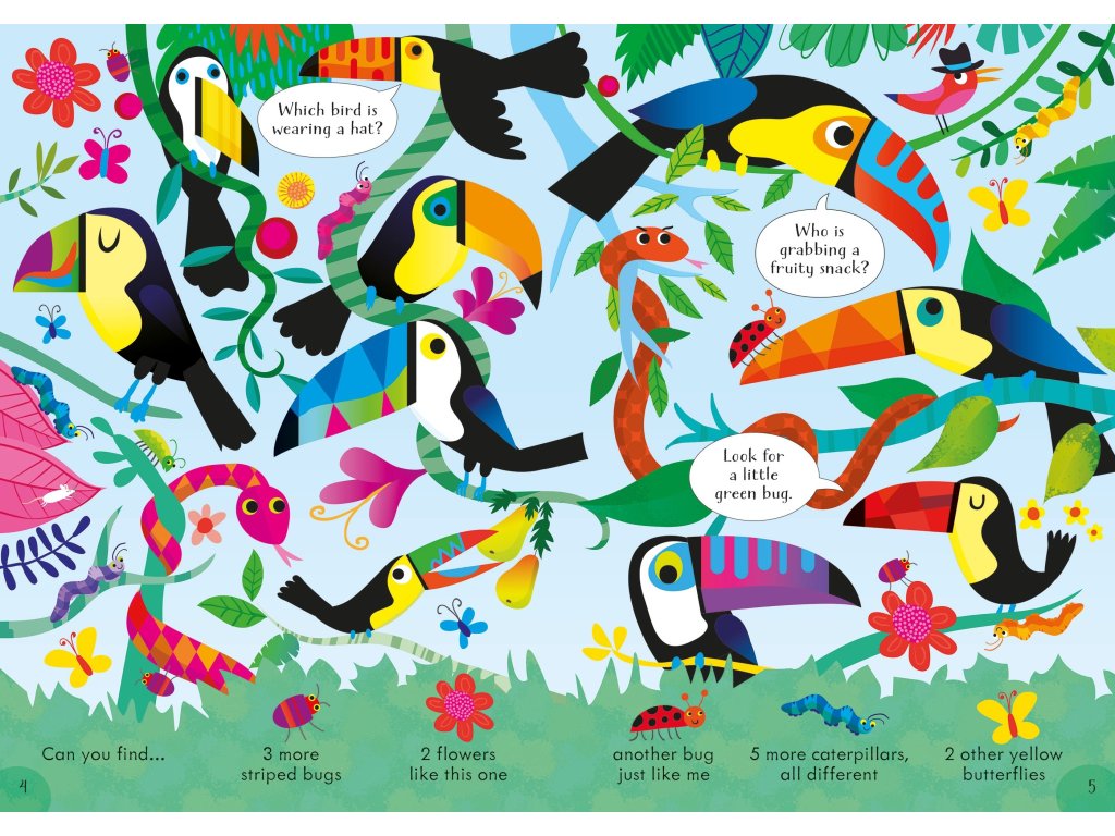 This delightful book is full of forest creatures and other things to spot, match, count and talk about. Animals in each scene invite readers to look for specific things, such as a squirrel on a swing, while picture clues with text and number prompts offer further suggestions. There is a little white mouse to spot in each picture too. Younger children will enjoy sharing this book with older children or adults and additional details enable grown-ups to make up further questions of their own.