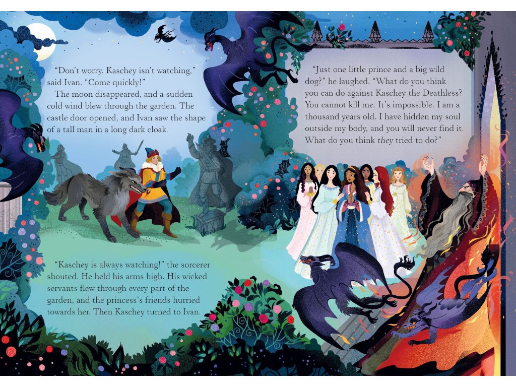 Prince Ivan sets out to find the thief; a journey on which he's helped by Silver Wolf to trace first the Firebird, then the winged Horse of Power, then the princess Marya, held captive by the wicked sorcerer Kaschey. With fun activities after the story, and online audio in both British English and American English.