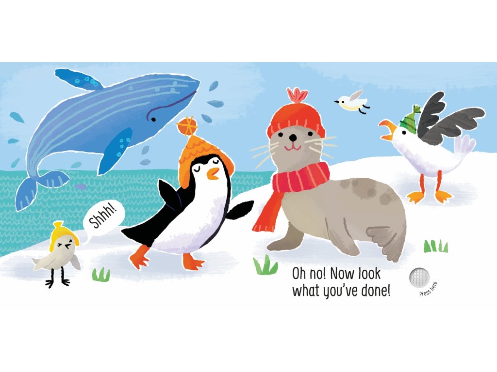 Děti nebudou moci odolat dotyku nadýchaných skvrn, aby slyšely všechna různá antarktická zvířata v této veselé a roztomilé knize. Na poslední stránce můžete slyšet všechna zvířata být hlučná společně, spolu s hudebním finále, které je zaručeně roztančit ty nejmenší!