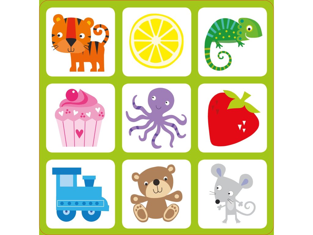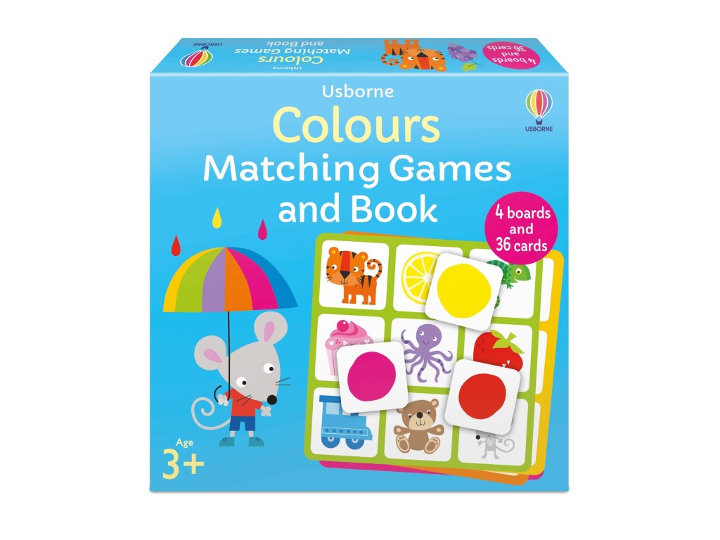 The box contains bingo boards, cards and a book, which has instructions for two different matching games as well as colourful illustrations showing the numbers 1 to 10.