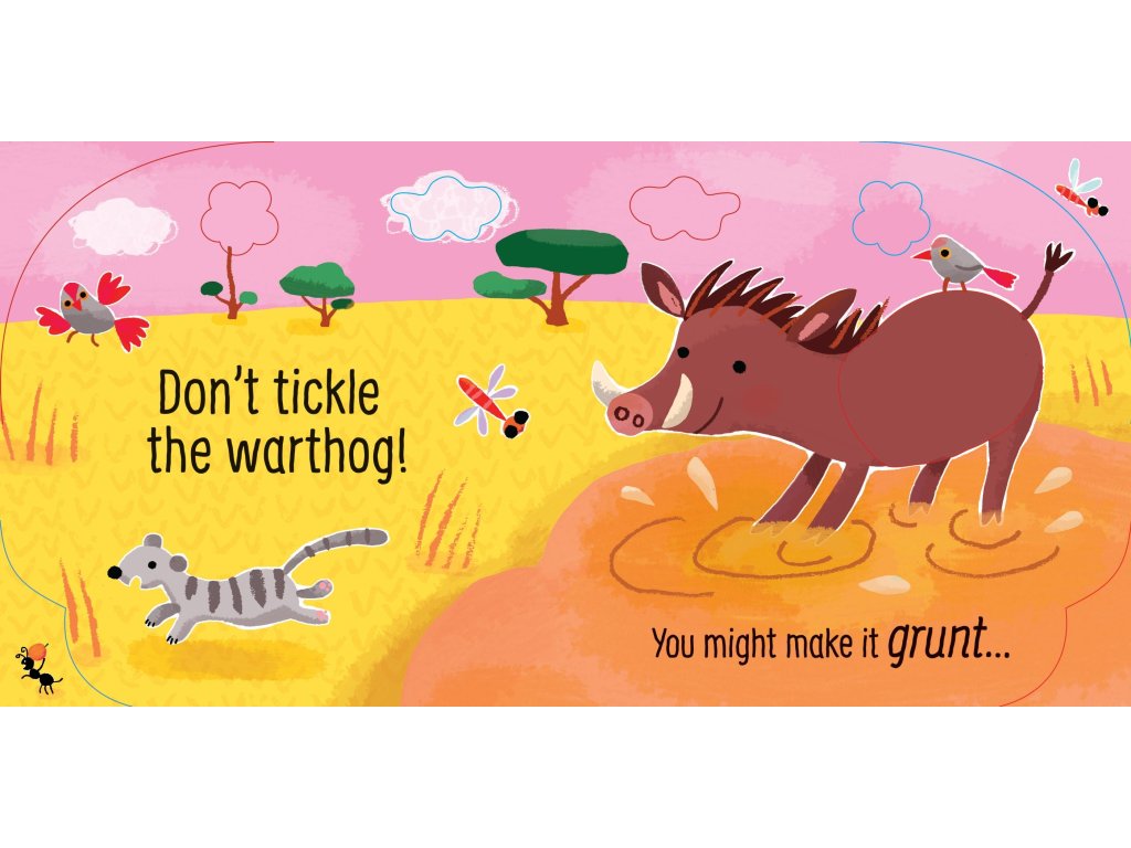 Little children won't be able to resist tickling the touchy-feely patches to hear the animal sounds in this unique and hilarious novelty book. As well as the monkey there's a warthog, a laughing hyena and an ostrich to be tickled, followed by a musical finale where you can hear all the animals being noisy at once.