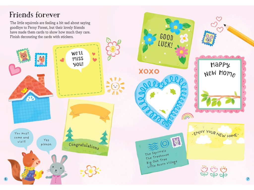 Skvelá samolepková knižka s príbehom o rodine veveričiek a ich priateľoch! Zaujala obe deti (3 a 5rokov), samolepky sa ľahko prelepujú, netrhajú sa. Doporučujeme.