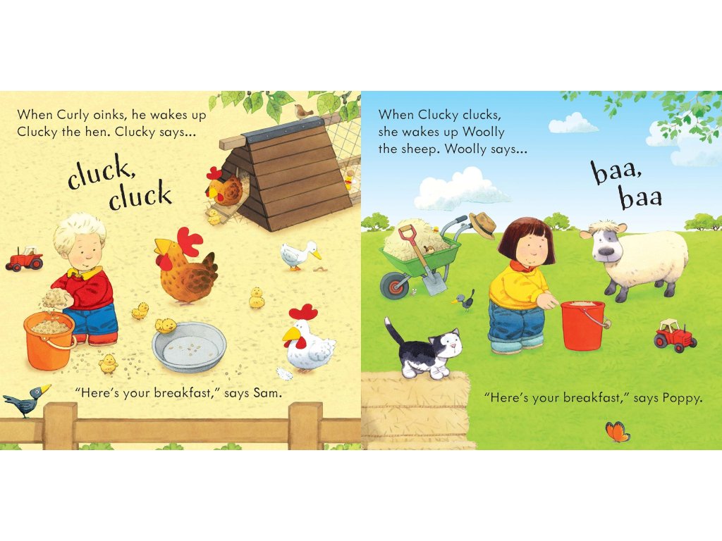 Little children will love hearing the farm come to life as they press the pages of this entertaining book, to hear Curly the pig, Woolly the sheep, Rusty the dog and more. At the end you’ll hear all the noisy animals at once, accompanied by a jolly tune.