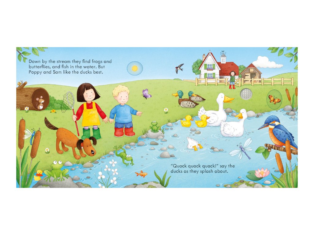 Little children will love hearing the farm come to life as they press the pages of this entertaining book, to hear Curly the pig, Woolly the sheep, Rusty the dog and more. At the end you’ll hear all the noisy animals at once, accompanied by a jolly tune.