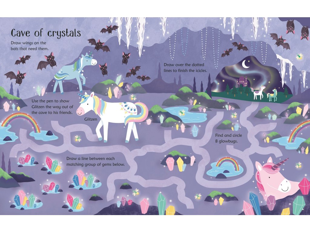 The wipe-clean pen can easily be rubbed off the shiny pages so children can do the activities again and again.