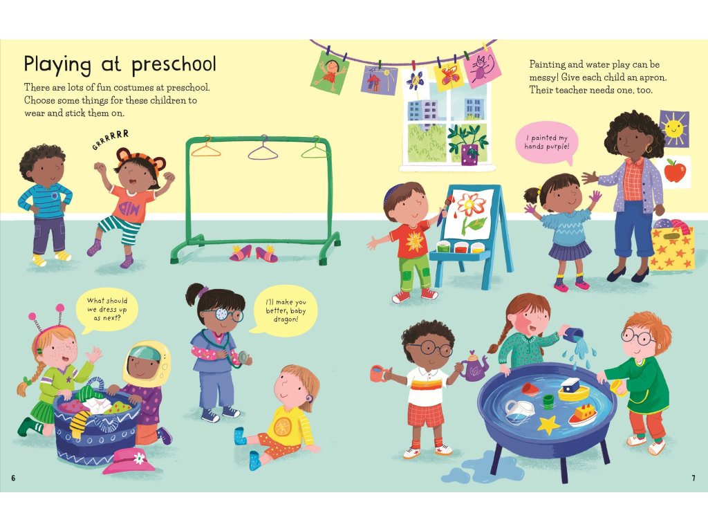 Děti si zamilují svobodu výběru oblečení pro různé postavy v různých scénách, od deštivého dne v lesní škole až po horký a slunečný výlet na pláž.