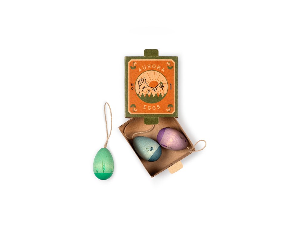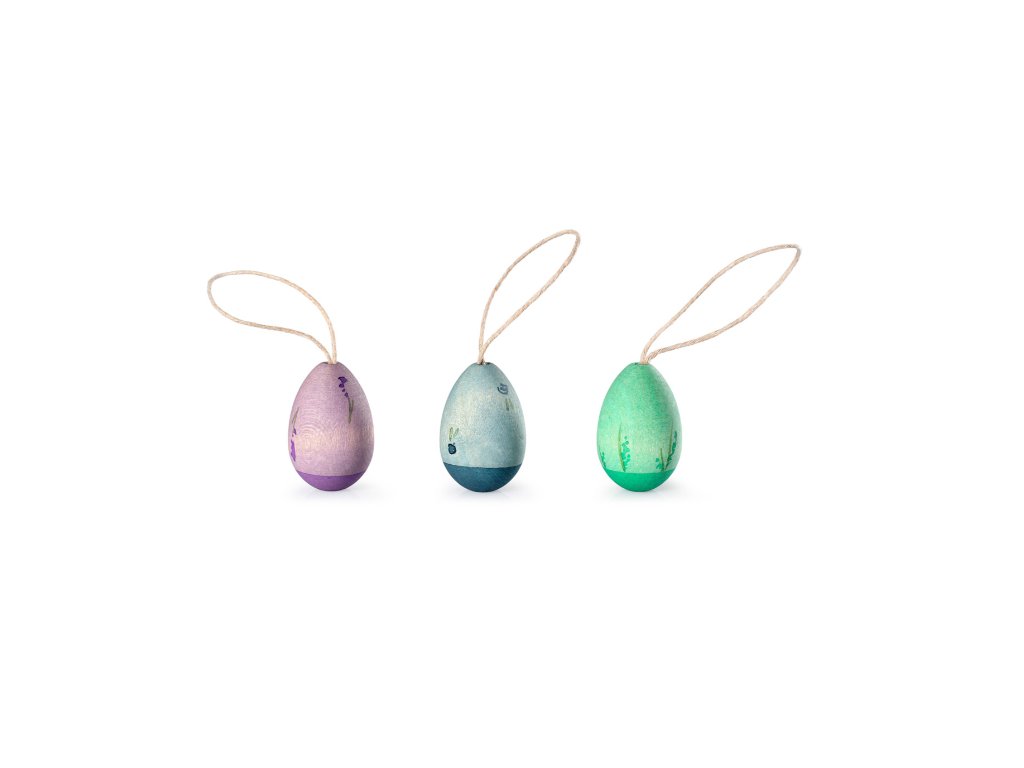 Vajíčka jsou vyrobena z udržitelného dřeva (certifikace PEFC) a barvena netoxickými barvami – bezpečná i pro ty nejmenší (doporučený věk 3+).