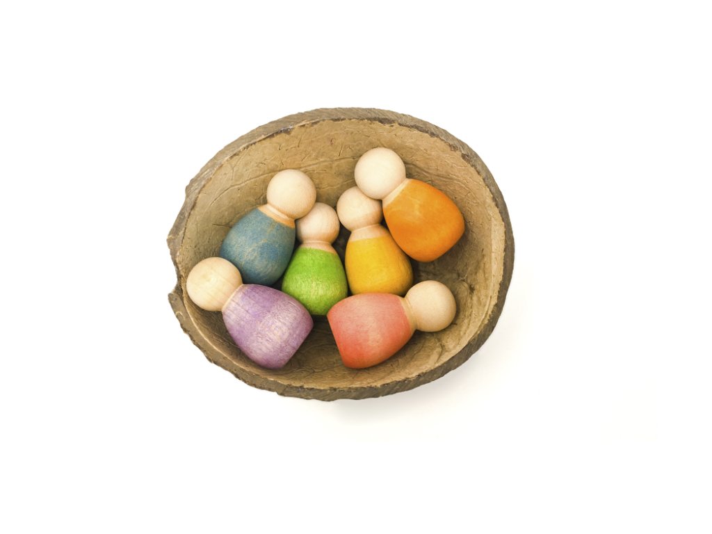 - Počet kusů: 6 ks v duhových barvách + miska z kokosu