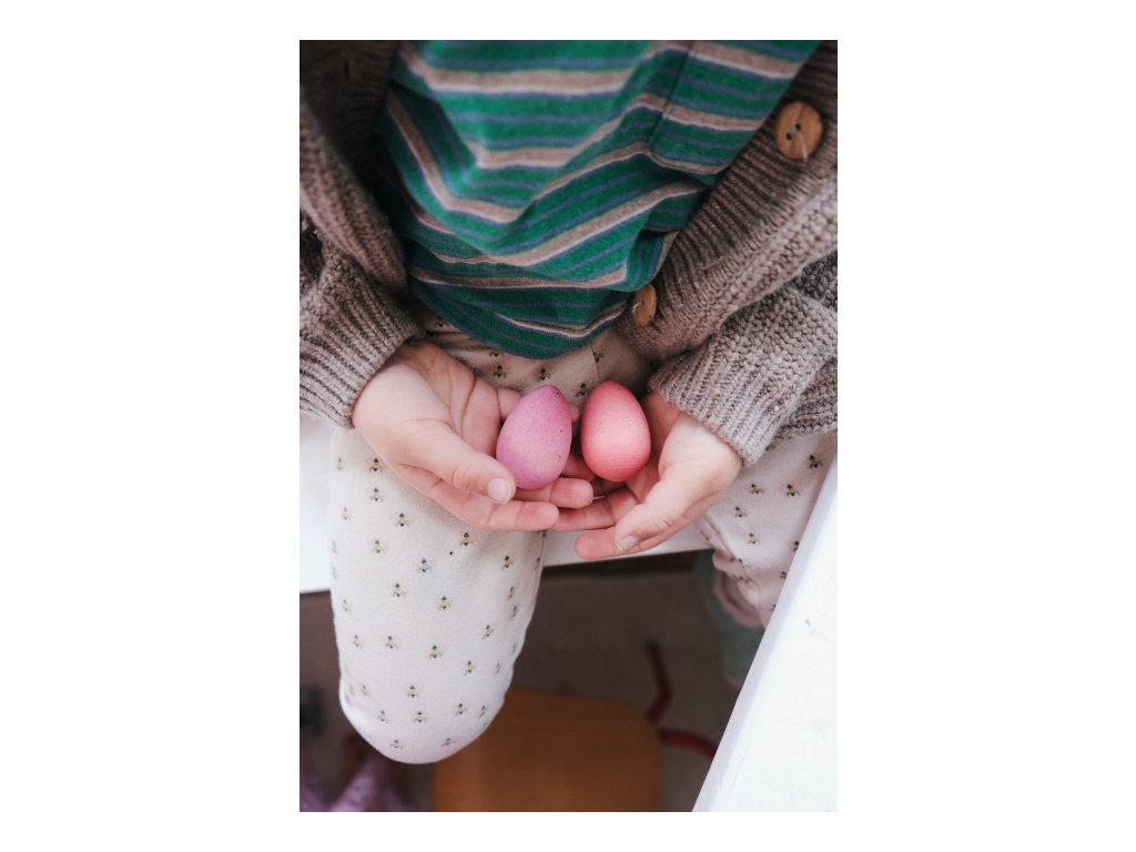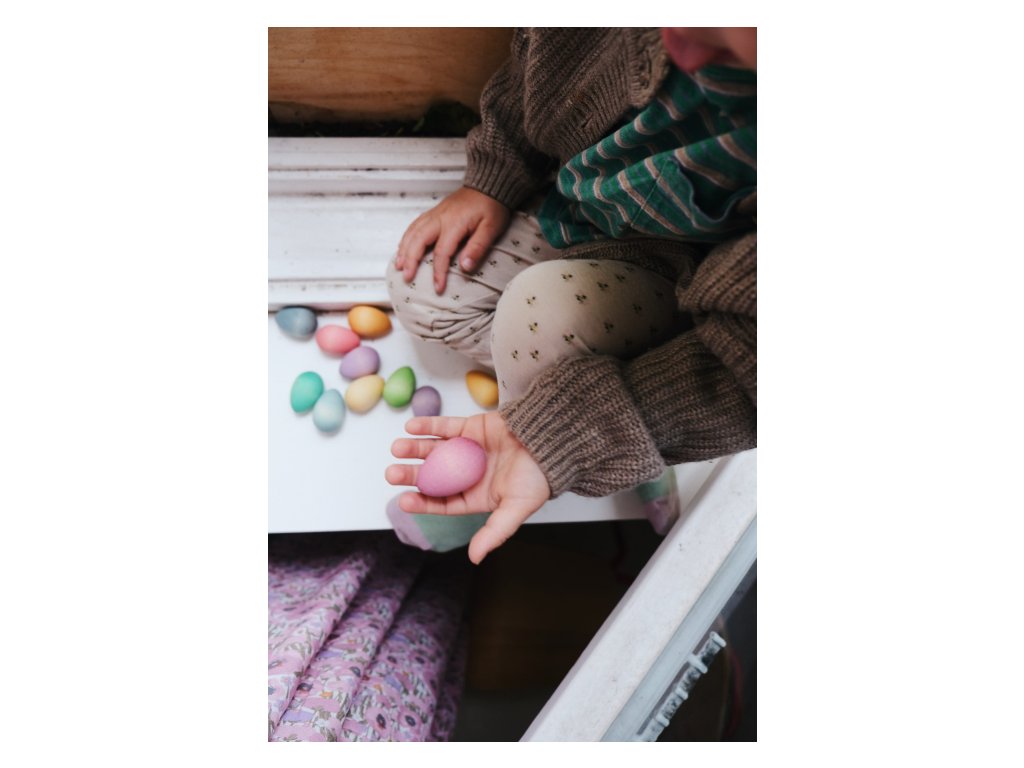 Vajíčka jsou vyrobena z udržitelného dřeva (certifikace PEFC) a barvena netoxickými barvami – bezpečná i pro ty nejmenší (doporučený věk 3+). Oceněna značkou Spielgut za vysokou hrací hodnotu.