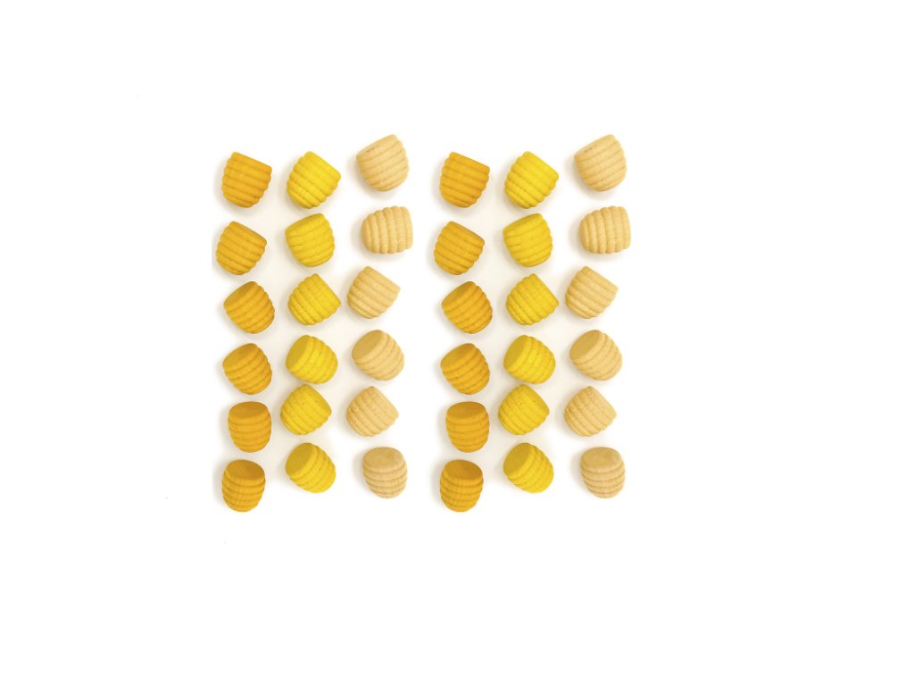 - 36 dřevěných dílků ve tvaru včelích pláství