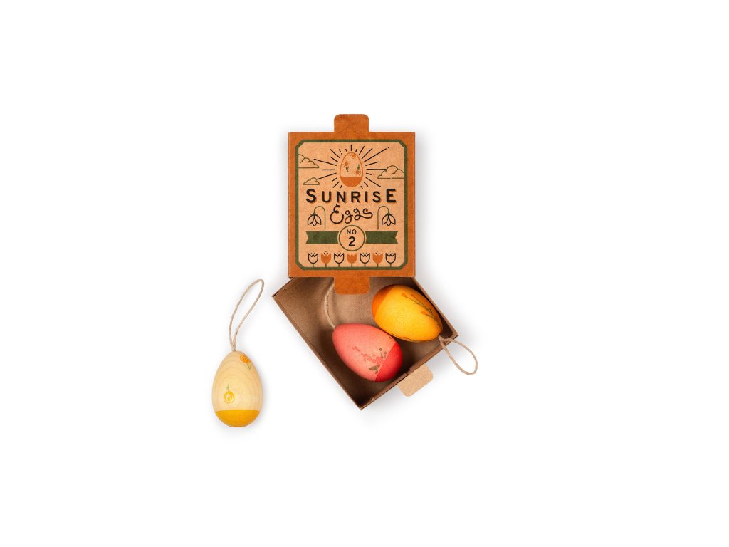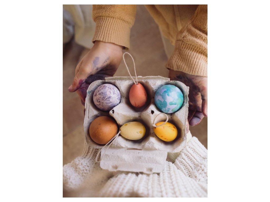 Vajíčka jsou vyrobena z udržitelného dřeva (certifikace PEFC) a barvena netoxickými barvami – bezpečná i pro ty nejmenší (doporučený věk 3+).