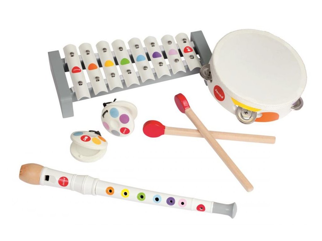Nádherný barevný hudební set pro malé hudebníky je pak pro vás to pravé! Hudební set obsahuje xylofon, tamburínu, flétnu a kastaněty. Nástroje podporují rozvoj hudebního cítění a smyslu pro rytmus vašich ratolestí, a díky jejich různorodosti celé vaší rodince určitě nabídnou hodiny plné zábavy. Vhodné pro děti od 2 do 5 let.