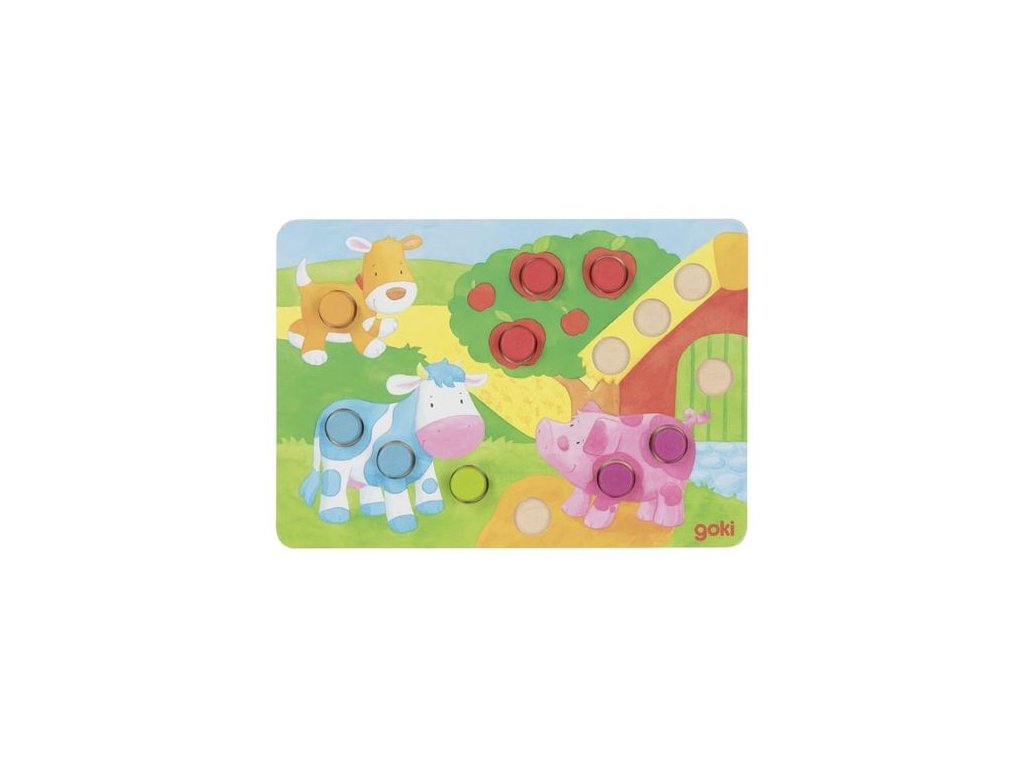 Hra se skládá ze čtyř barevných destiček s obrázky a malé děti se učí přiřazovat správně barvičky. Nejmenší děti mohou nejprve doplňovat obrázky bez efektu soutěživosti. Hra je vyrobena ze dřeva a ošetřena zdravotně nezávadnými barvami. Vhodné pro děti od 3 let.