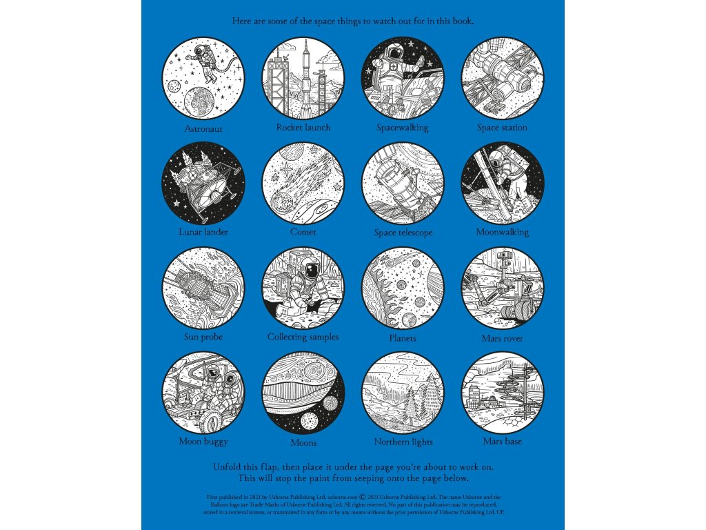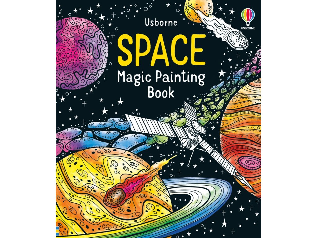 Full of awe-inspiring scenes from space. Simply brush water over the black and white designs to watch everything from asteroids to Sun probes burst into magical colours.