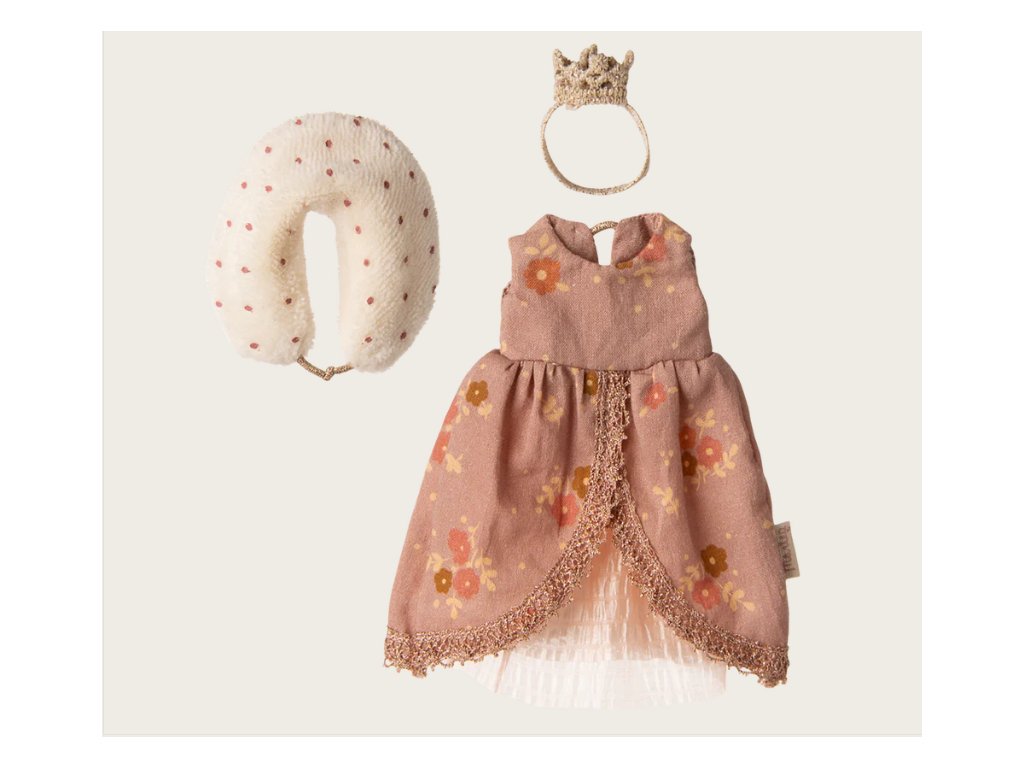 Pokud vaše myška sní o tom, že se oblékne jako opravdová princezna, je tohle ideální příležitost si tento sen splnit. Tyto šaty jsou ideální velikostí pro myšky velikosti "máma" a jsou vyrobeny s mnoha krásnými detaily.