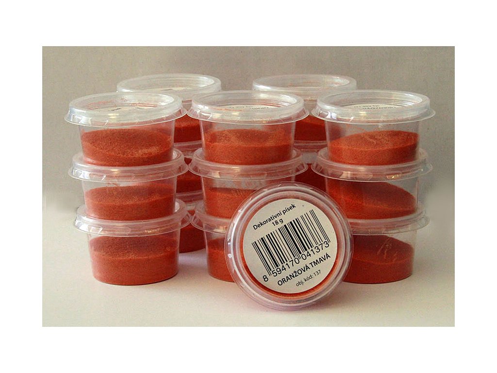 Oranžová tmavá . Velmi jemný, ručně barvený, čistý křemičitý písek v nádhermých odstínech. Písek nezůstává na prstech a krásně se sype.