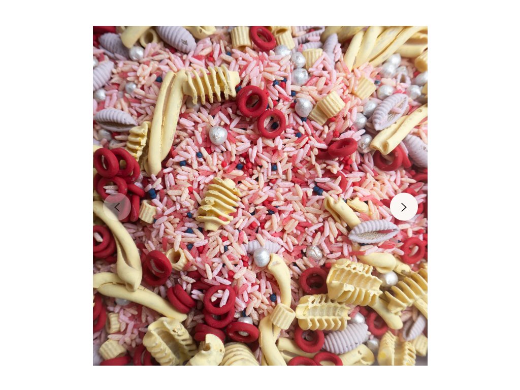 Složení: cizrna, rýže, těstoviny - ošetřeno bezpečnými netoxickými barvivy.