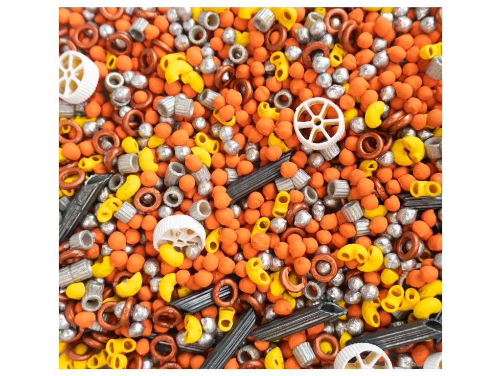 Složení: cizrna, rýže, těstoviny - ošetřeno bezpečnými netoxickými barvivy.