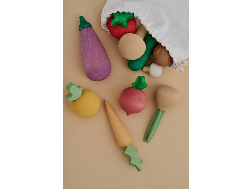With a Vegetable set you can feed dolls, make a farmer’s market or a kitchen garden on a crumpled blanket. Play with vegetables, touch them, spin them, draw from life and decorate your room with them!