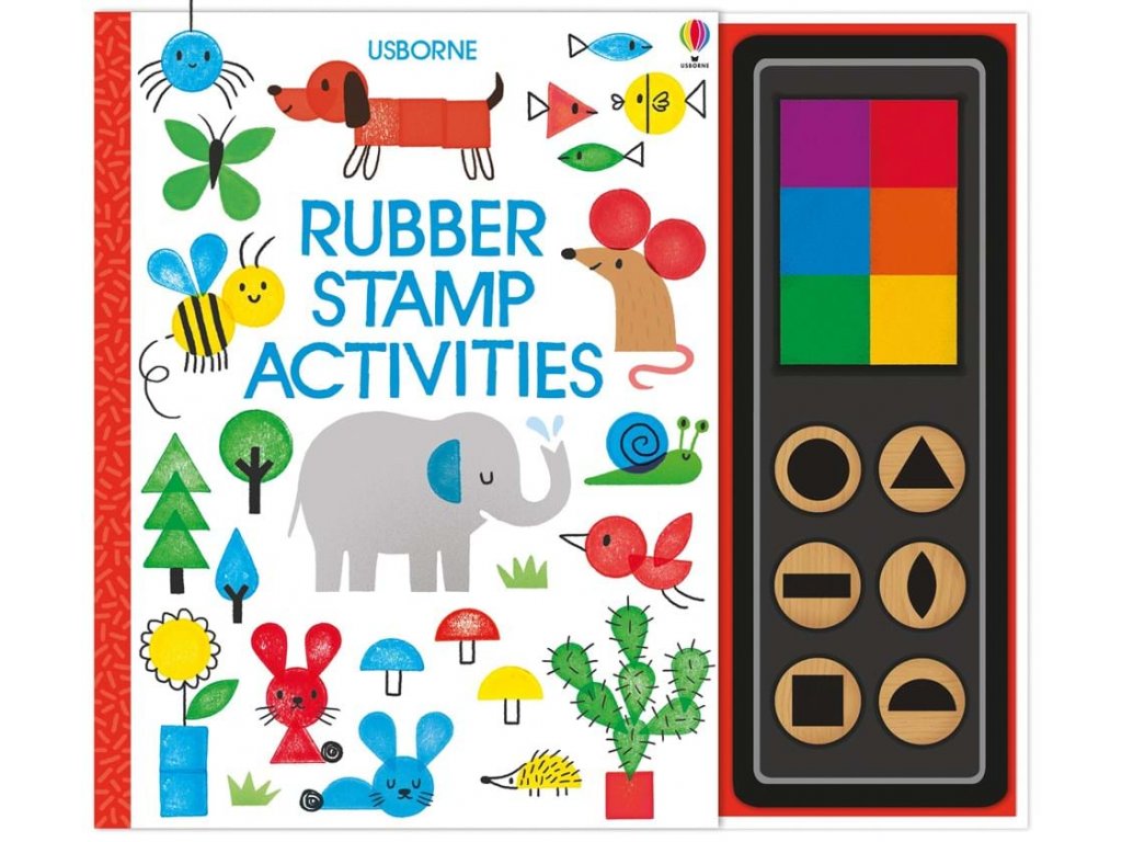 A book and rubber stamp set, with six colourful ink pads. The book is bursting with ideas for making pictures with the circles, triangles, squares and petal shapes on the stamps. Step-by-step instructions show how to make animals, robots, a princess’s ball gown and a castle and there’s lots of space for children to fill with their own pictures.