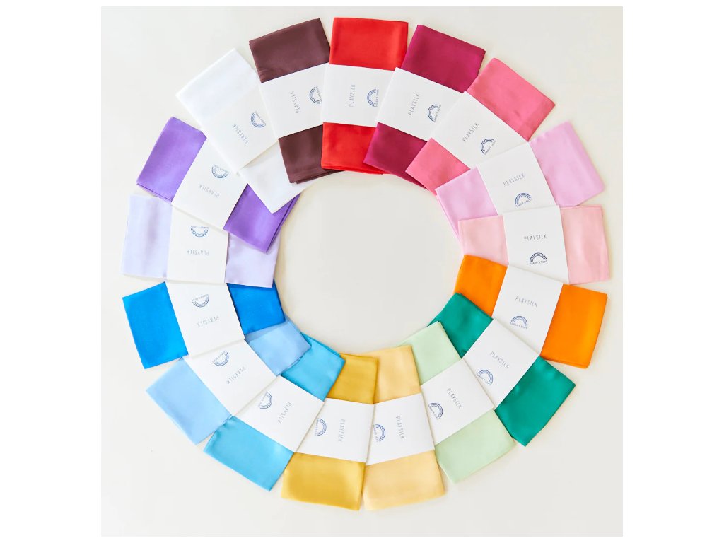 Materiál: 100% čínské hedvábí, přírodní a udržitelné. Hedvábí se barví pomocí barviv fixovaných barvicí lázní s nízkým pH. Netoxická barviva. Prát v ruce.