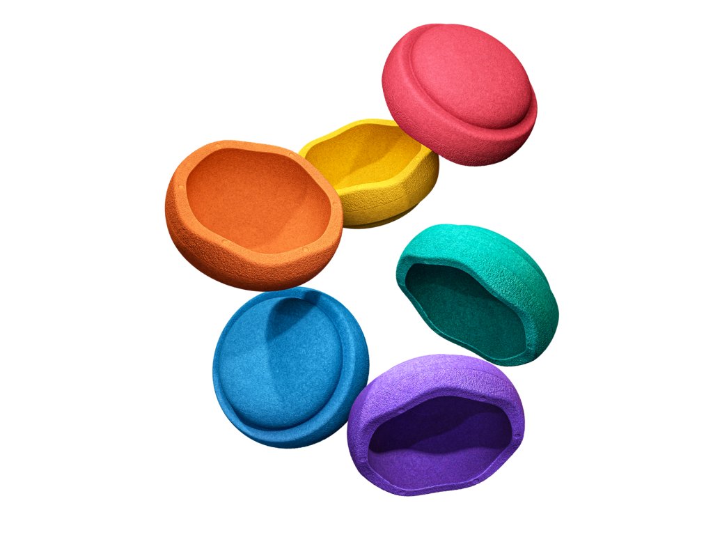 Barevné balanční kameny, misky a balanční desky společnosti Stapelstein