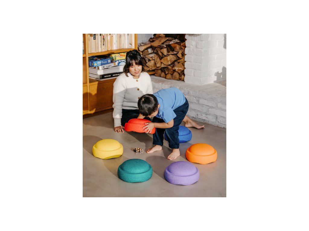 Kameny můžete používat jako balanční pomůcku, misky na třídění barev nebo hrátky z vodou.