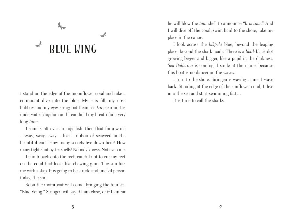 Blue Wing is desperate to become a shark caller, but instead she must befriend infuriating newcomer Maple, who arrives unexpectedly on Blue Wing's island.