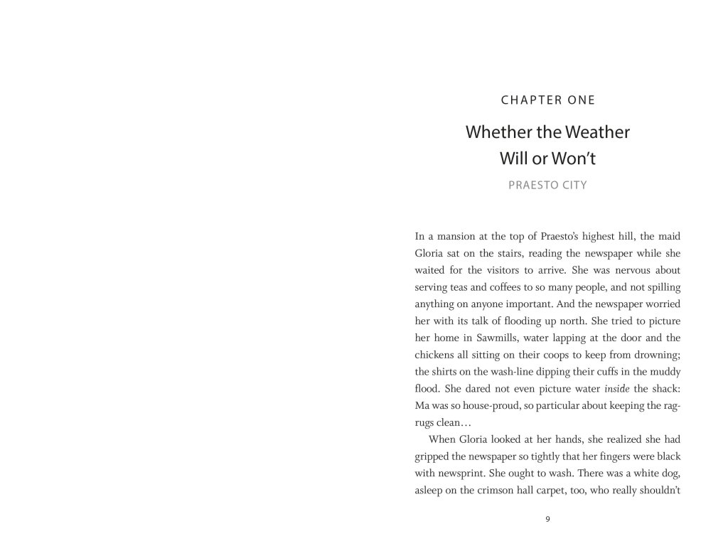 Fifteen-year-old Gloria is maid to Afalia's tyrannical Head of State, Madame Suprema. When the country is hit by unprecedented flooding, Madame Suprema runs away, fearing she will be blamed for the crisis. To cover up this cowardly act, Gloria is made to step into Madame Suprema's shoes and is thrust into a world of corrupt and desperate politicians. As Gloria becomes aware of the forces toying with her every move, she must take decisions that could save, or end, thousands of lives - including her own...
