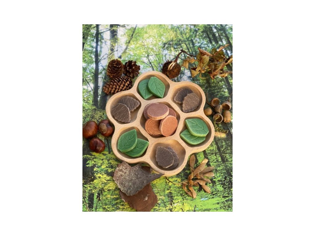 Děti si užijí vymýšlení příběhů s použitím těchto přírodou inspirovaných kamenů – listů, klád a šišek. Poutavé kameny budou inspirovat ke hře a podpoří kreativitu a ponoří děti do imaginárních světů lesů bohatých na jazyky. Každý smyslový kámen je na jedné straně vyrytý a na druhé hladký, aby podporoval hru s otevřeným malým světem.