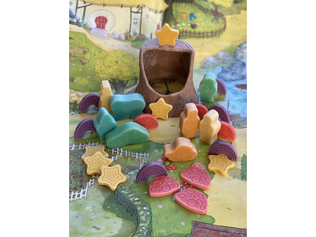 Děti si užijí vymýšlení příběhů plných kouzelných muchomůrek, klenoucích se duh a třpytivých hvězd. Tyto poutavé kameny ponoří děti do imaginárních fantazijních světů, podpoří kreativitu a inspirují jazykově bohatou hru. Každý smyslový kámen je na jedné straně vyrytý a na druhé hladký, aby podporoval hru s otevřeným malým světem.